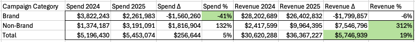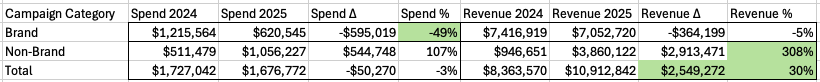 | Non-Brand | +132% | +312% |