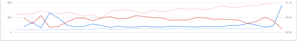 Red: CPC, Solid: ’23, dotted: ’22. Drop of 51%